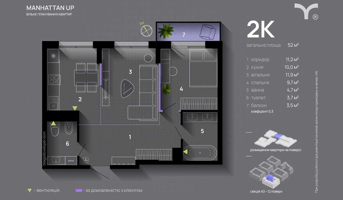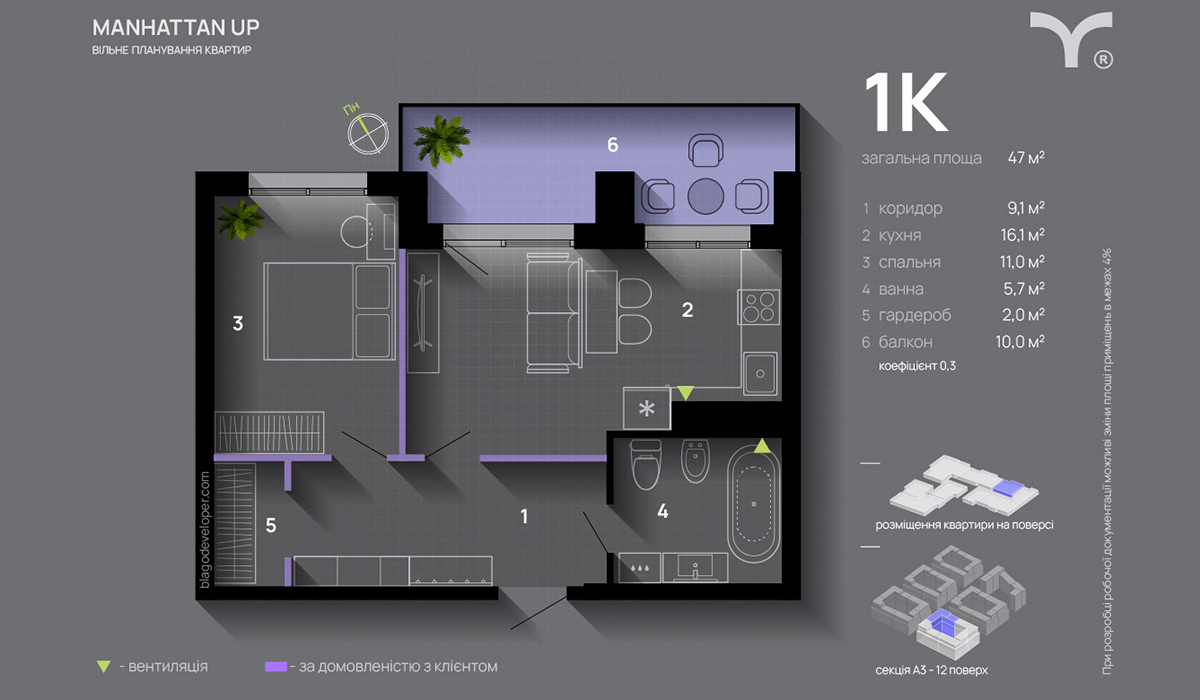 Наприклад, так виглядають планування квартири-студії, які можна купити в житловому районі Manhattan UP: